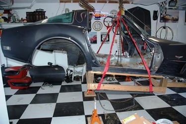 With the lift rigging in place, the Vette is placed in position for the extension.