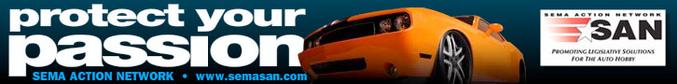 The SEMA Action Network is a nationwide partnership of car clubs, and individual enthusiasts (like you) who work together to impact legislation that affects car and truck hobbyists of all kinds. By joining the SAN you will receive up-to-date alerts on hobby-related legislation in your state and across the country.