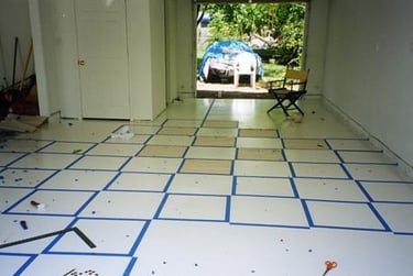 The White squares are now taped off, and the exposed floor is ready to be painted Black.
