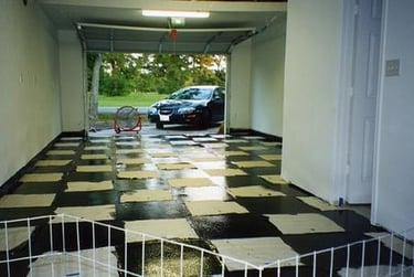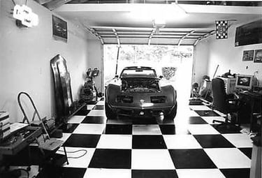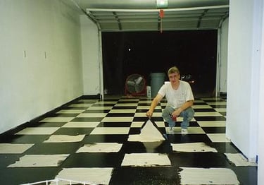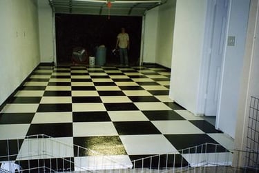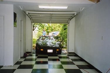 The garage was built during the Summer of 2002. Before I moved the Corvette into it, I painted the floor Epoxy Black & White squares. Here are the steps I took in finishing the floor: